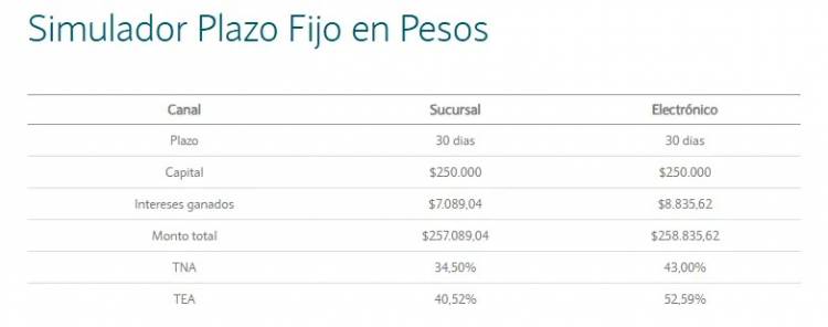 Cuánto se gana con una inversión de $250.000 a plazo fijo