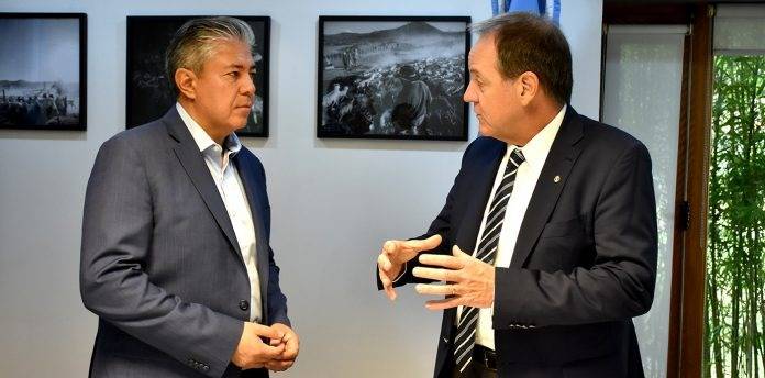El gobernador Rolando Figueroa y el gerente general de Pluspetrol en Argentina, Adrián Vila, firmaron esta mañana el convenio por el cual la operadora adhiere con un aporte económico de 500 mil dólares al Plan Provincial Redistribuir Oportunidades-Programa de becas Gregorio Álvarez.
