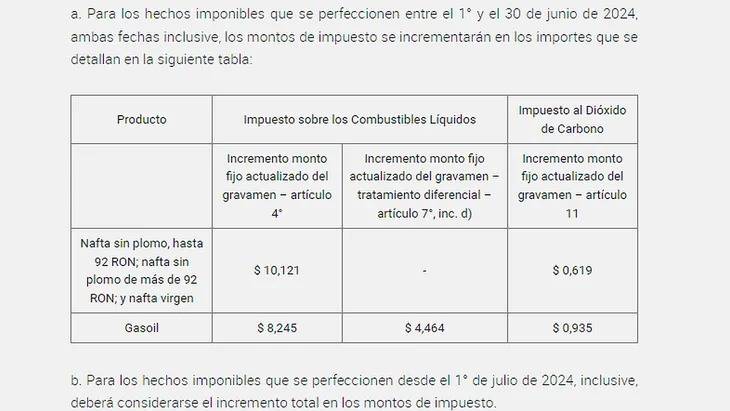 Y luego agregó: "Para los hechos imponibles que se perfeccionen desde el 1° de julio de 2024, inclusive, deberá considerarse el incremento total en los montos de impuesto".