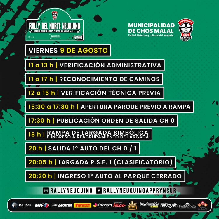 Se viene el Rally del Norte Neuquino por la sexta fecha del Campeonato Neuquino de Rally y te compartimos el itinerario general con todos los horarios de las actividades que tendrá la competencia.