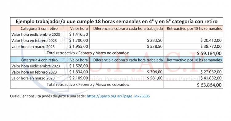 Ver los ejemplos en la imagen de pagos retroactivos. Por consultas dirigirte a una sede del sindicato