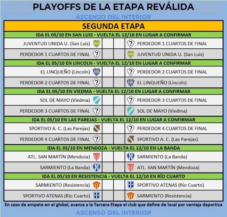 Los cuatro (4) clubes perdedores clasifican a la Segunda Etapa de la Revalida.