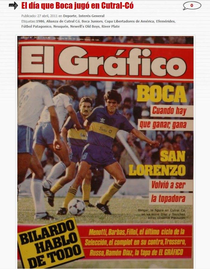 Todos los 27 de Abril, como aquel de 1986, se recuerda en la ciudad de Cutral-Có y en toda la provincia de Neuquén como el día que Boca Juniors arribó a la zona para jugar en “El Coloso” del barrio Ruca Quimey. El local, Club Social y Deportivo Alianza, jugó esa noche el partido más importante de su joven historia.