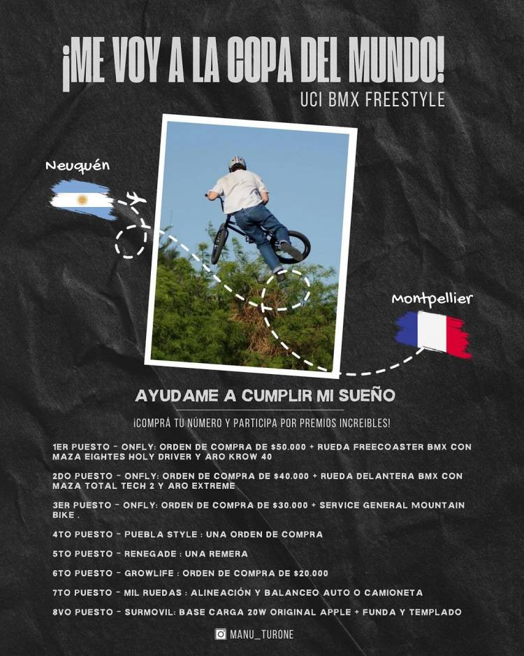 Manuel Turone nació en Neuquén hace 16 años y aseguró que le cuesta encontrar recuerdos que no estén asociados a los deportes extremos. Su pasión por la adrenalina creció junto con él, y hoy lo lleva a un nuevo desafío de magnitud internacional: calificó para participar del mundial de BMX en Francia.