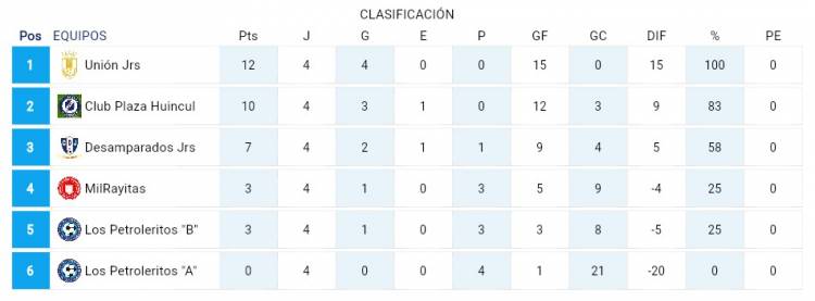 En segundo turno Club Plaza Huincul enfrento a Unin Jrs venciendo el conjunto de unión por 2 a 0.