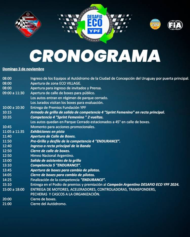 Además, los entusiastas del evento pueden participar a través de la página oficial de Facebook "Desafío ECO YPF", donde se puede votar en el ECO FAN. Los tres equipos que acumulen más "me gusta" tendrán la oportunidad de adelantar cinco puestos en la largada de la carrera, añadiendo un toque de competencia adicional.